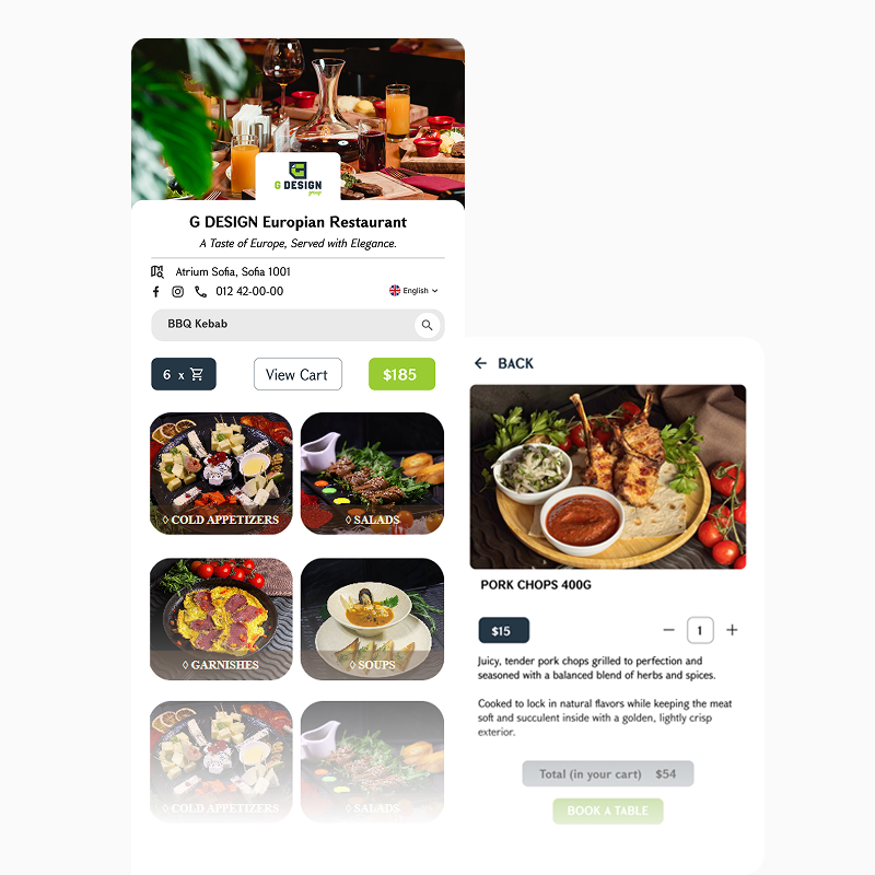 No apps to download—just scan and enjoy. Simplify operations, boost customer satisfaction, and bring your restaurant’s full experience to your guests’ fingertips.