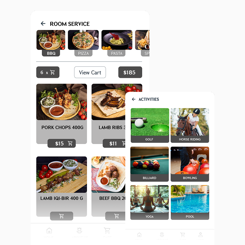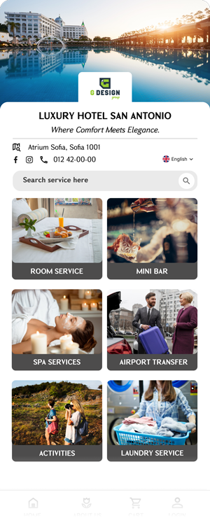 - Browse room service menus instantly
